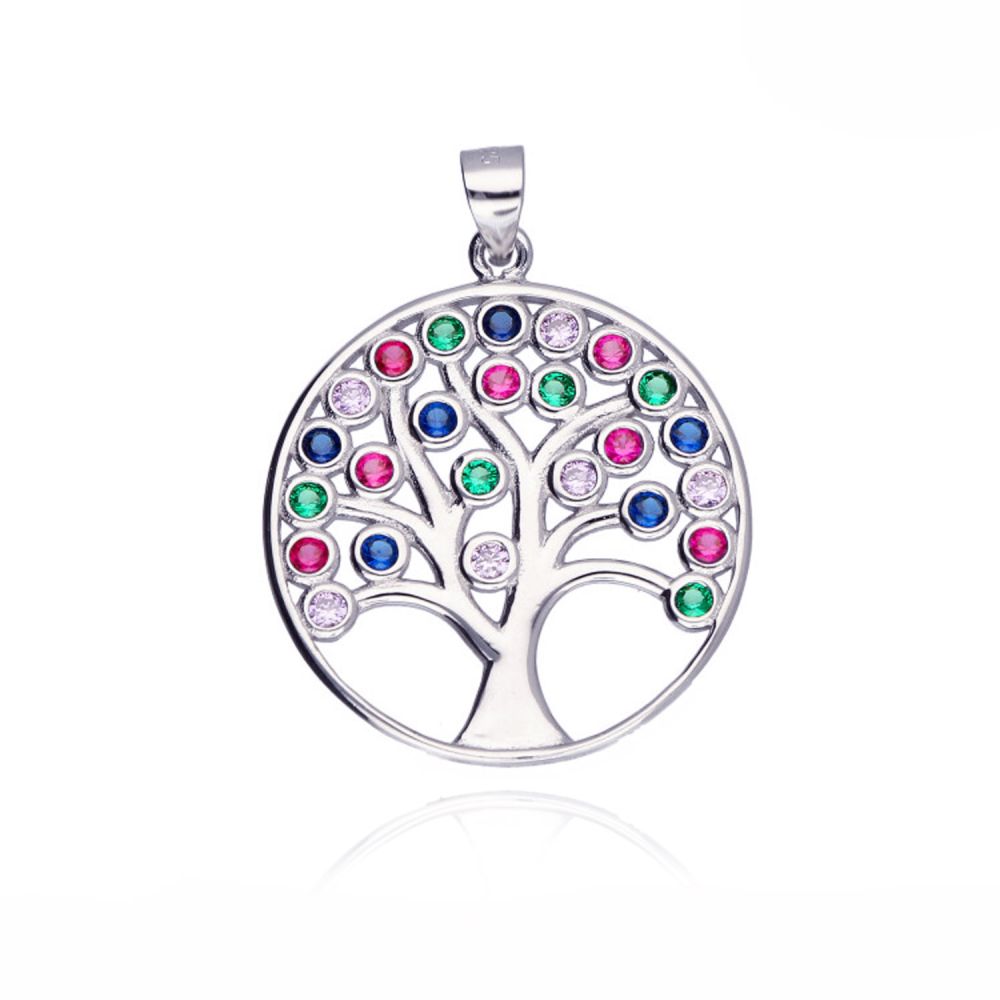 Stříbrný přívěsek MOISS s motivem stromu zdobeným různobarevnými zirkony symbolizuje život, sílu a harmonii. Jemný šperk plný pozitivní energie.