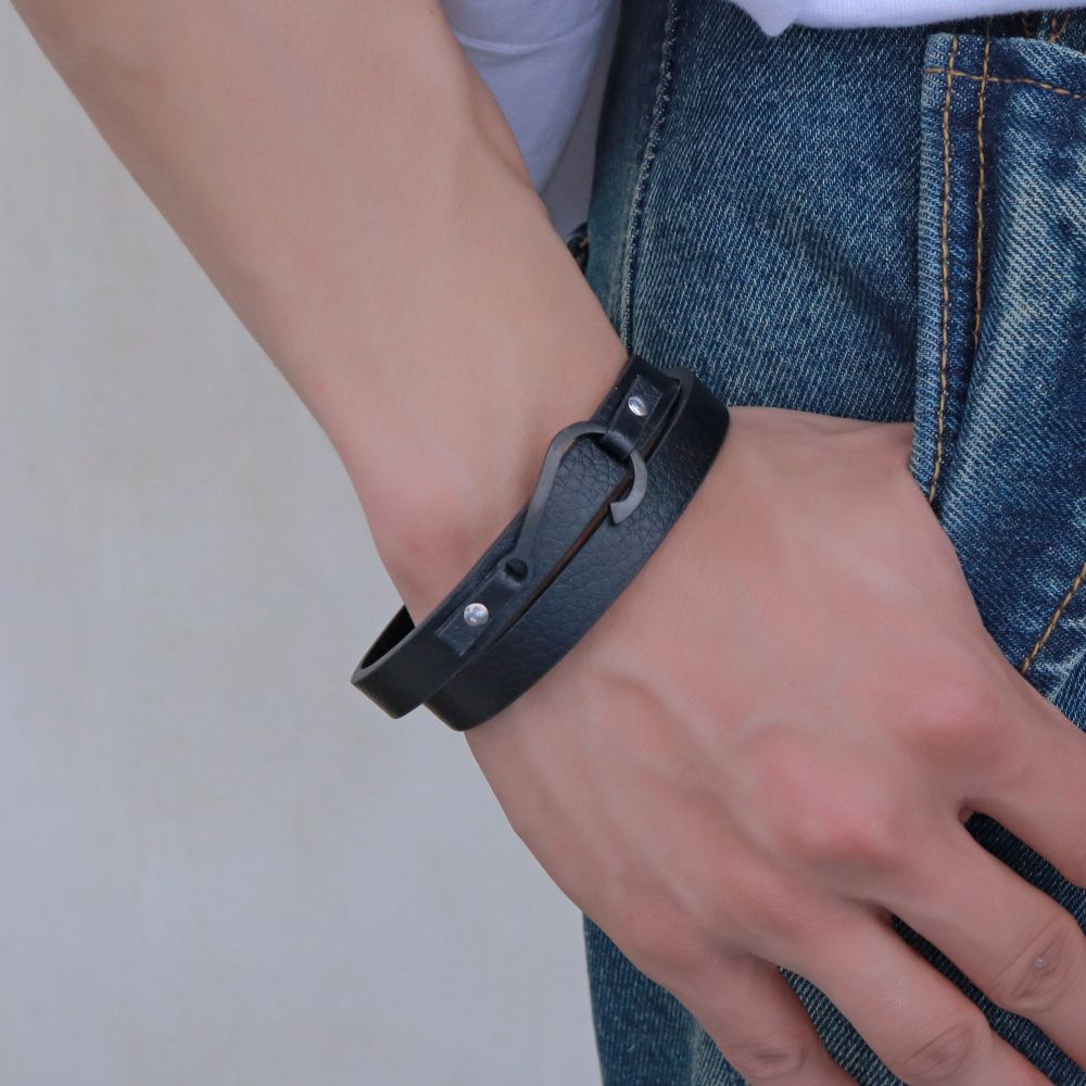DIVERSE kožený náramek z oceli