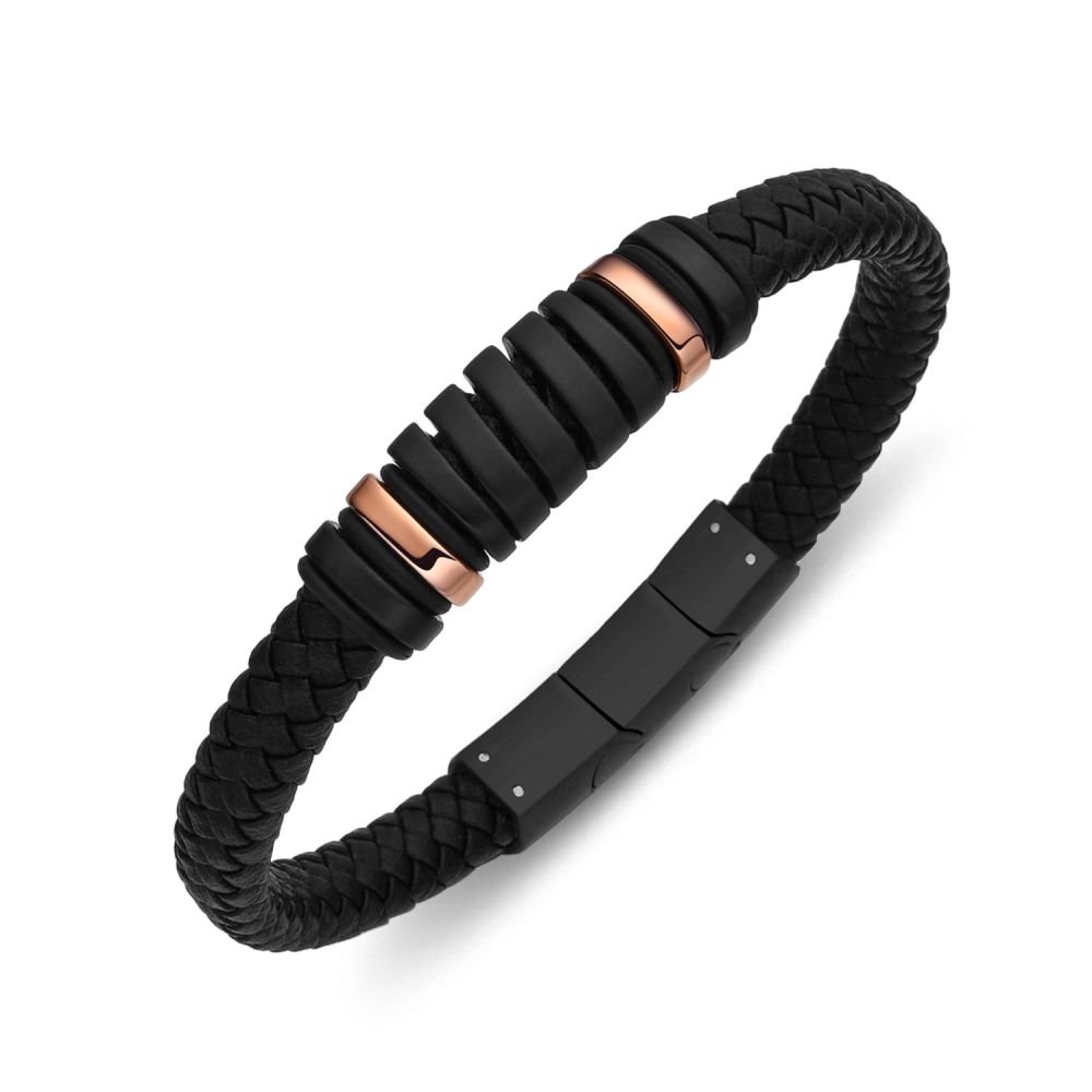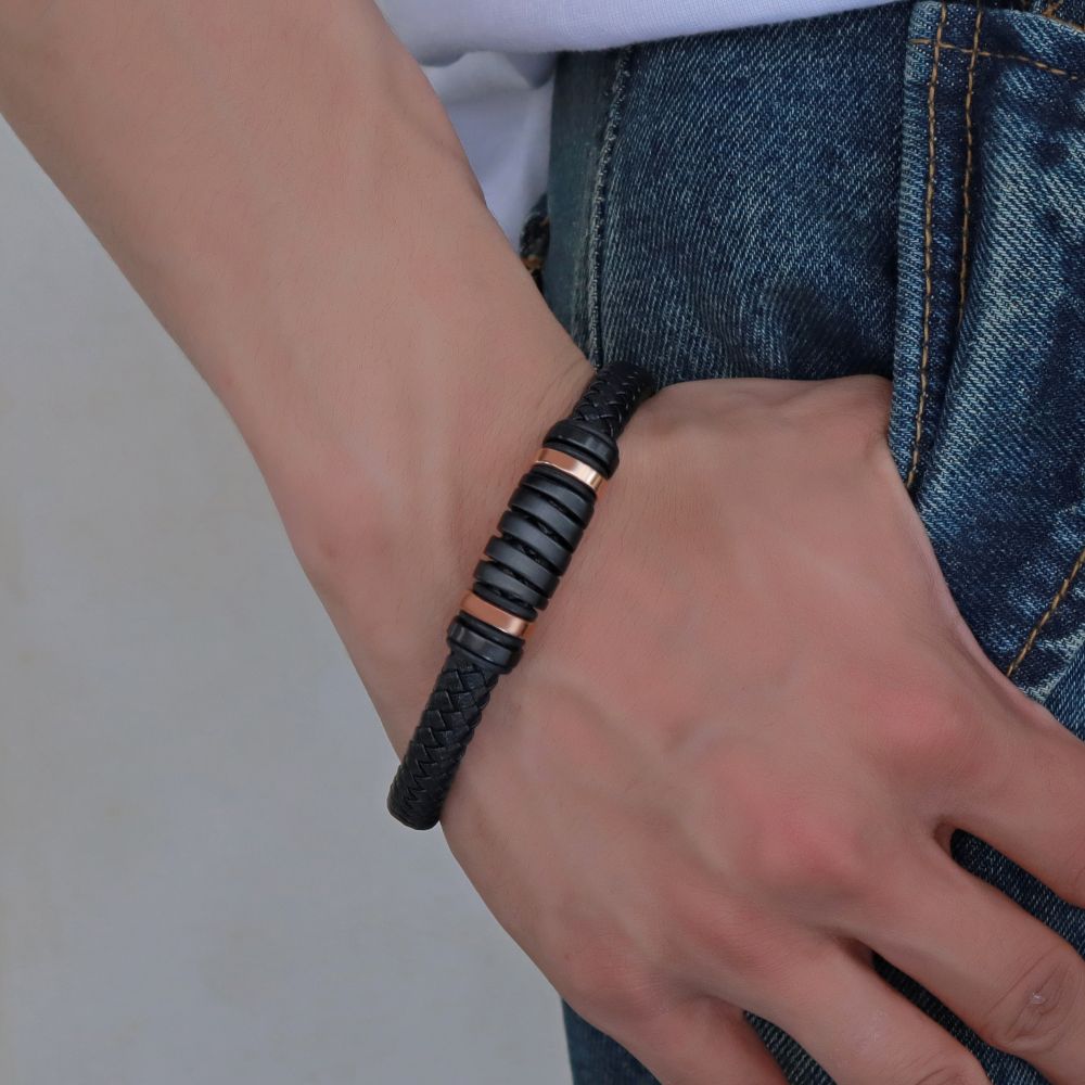 DIVERSE kožený náramek z oceli
