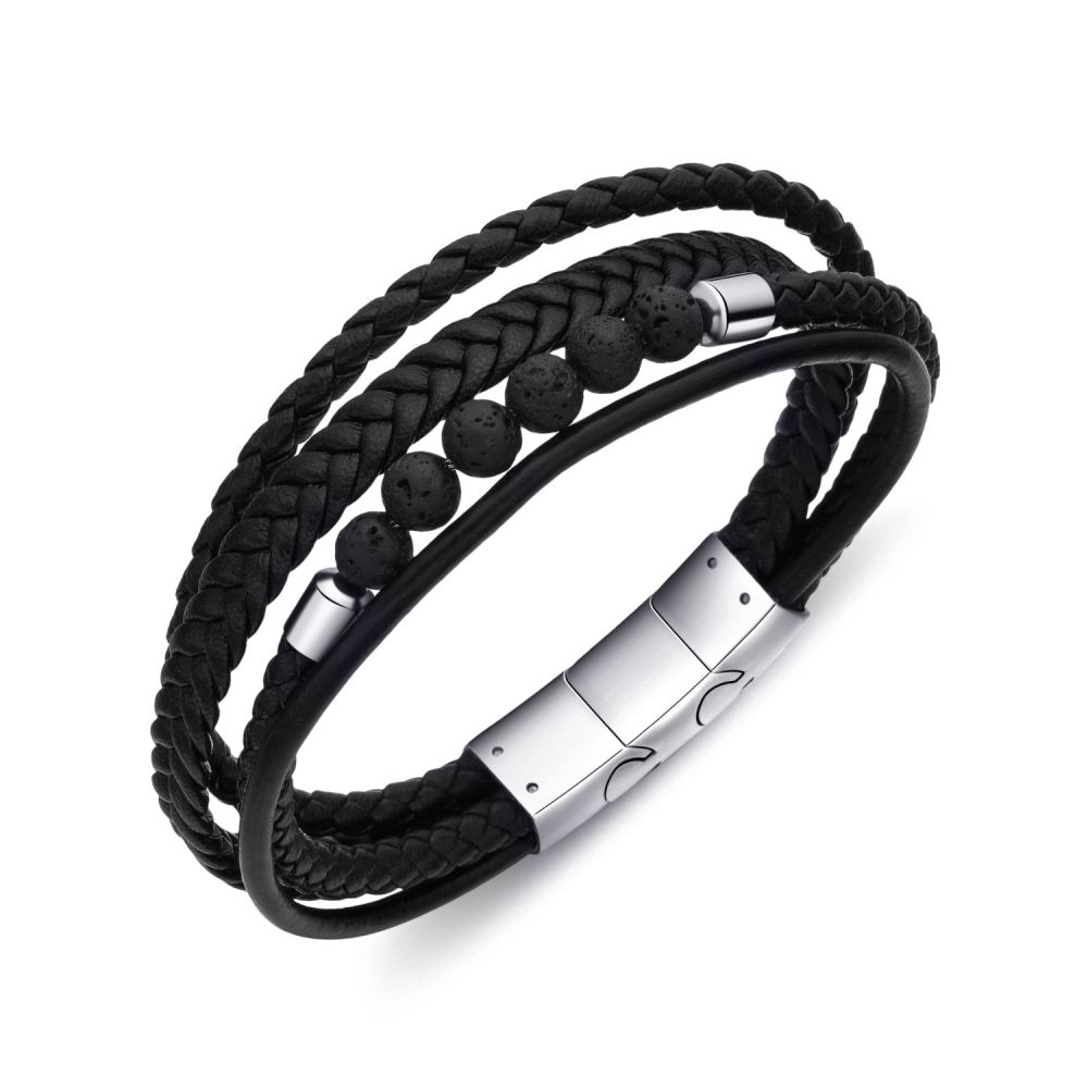 DIVERSE kožený náramek z oceli