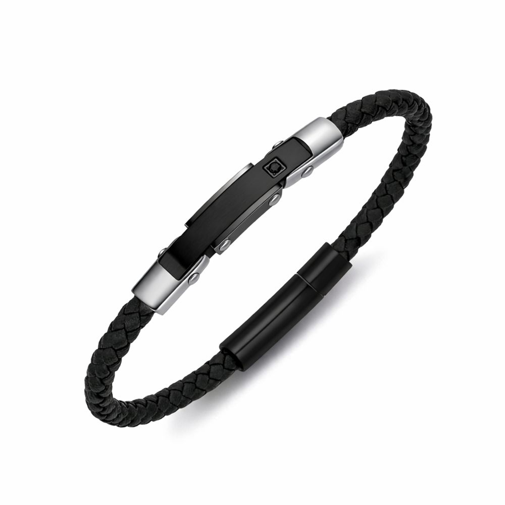 DIVERSE kožený náramek z oceli