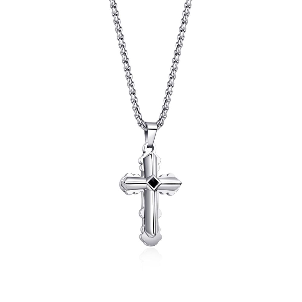 Pánský náhrdelník DIVERSE s křížkem z nerezové oceli je výrazný, ale nadčasový doplněk, který podtrhne mužský styl i osobnost.