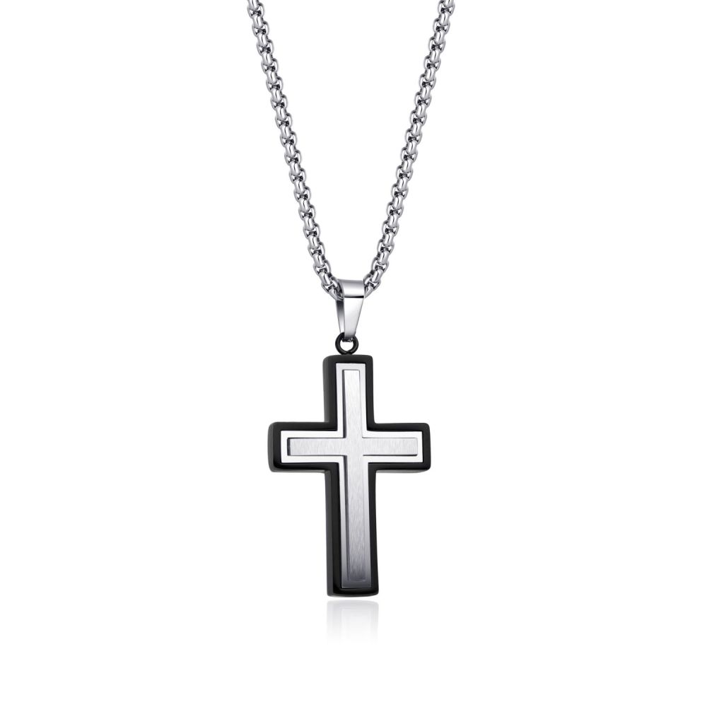 Pánský náhrdelník DIVERSE z nerezové oceli s motivem křížku je výrazným symbolem síly, stylu a osobitosti pro moderního muže.