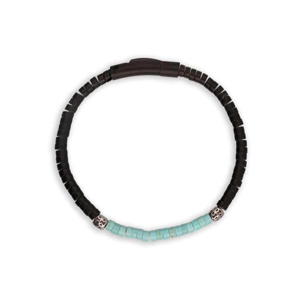 Moderní pánský náramek DIVERSE s prvky z oceli v kombinaci černé a tyrkysu. Stylový doplněk, který podtrhne osobitý vzhled.