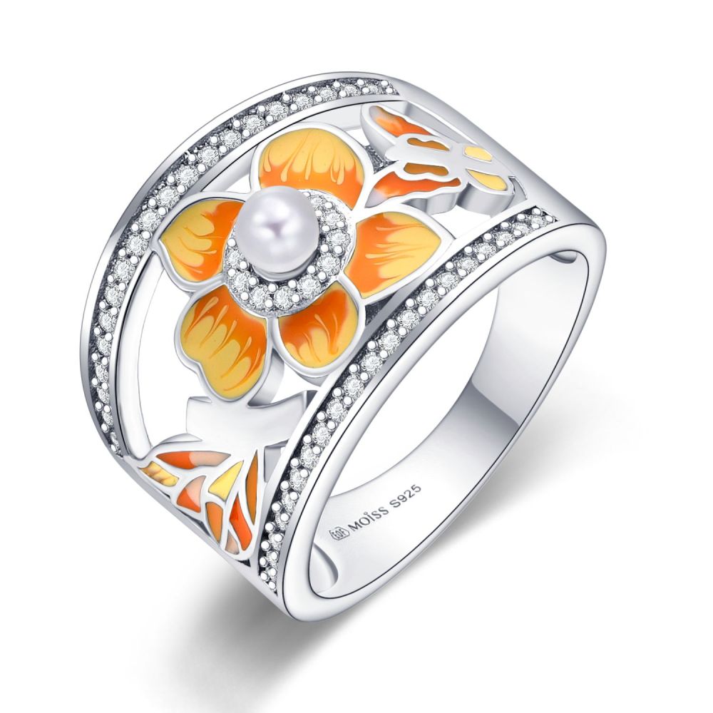 MOIS stříbrný prsten SMALT KVĚTINA