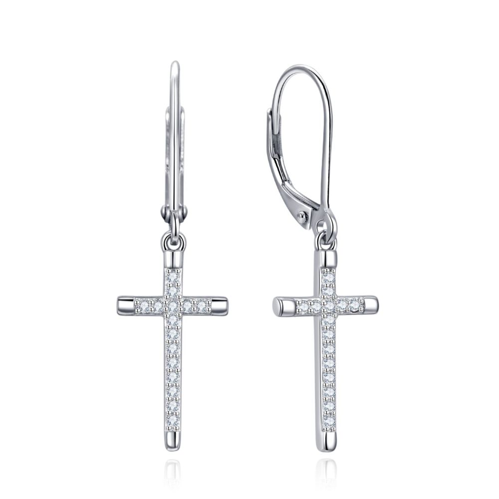 Elegantní stříbrné náušnice MOISS s motivem křížku představují jemný symbol víry, ochrany a nadčasového stylu.