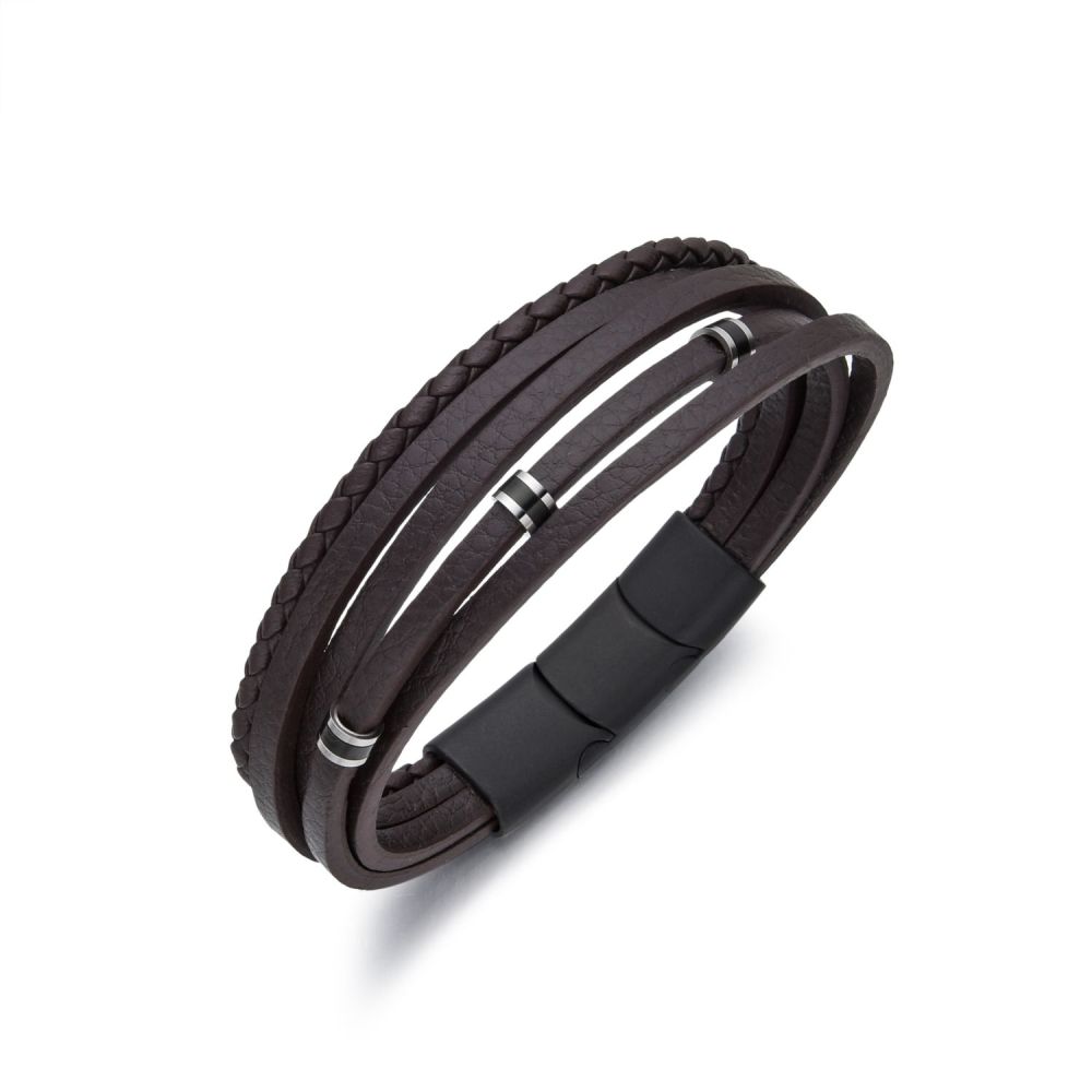 DIVERSE kožený náramek z oceli
