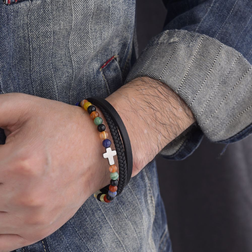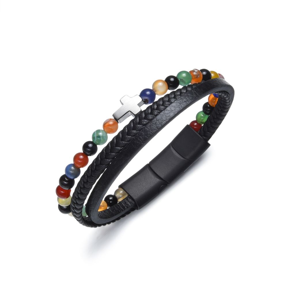 Pánský kožený náramek DIVERSE s ocelovým křížkem spojuje mužný styl, symboliku a moderní design. Výrazný doplněk pro každodenní nošení.