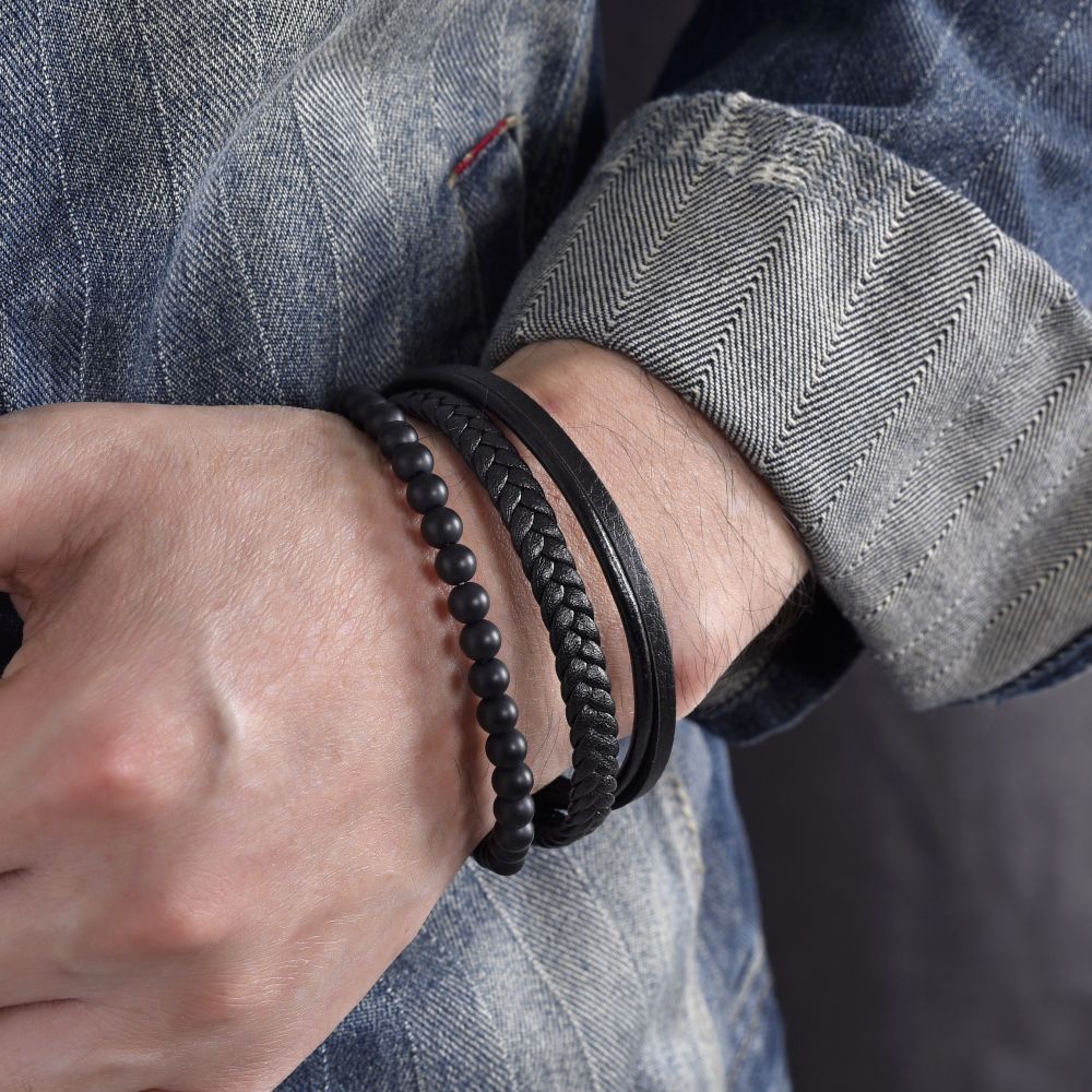DIVERSE kožený náramek z oceli