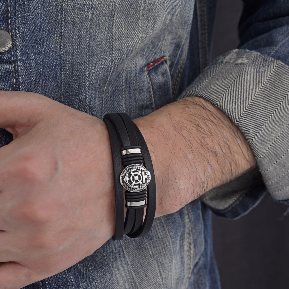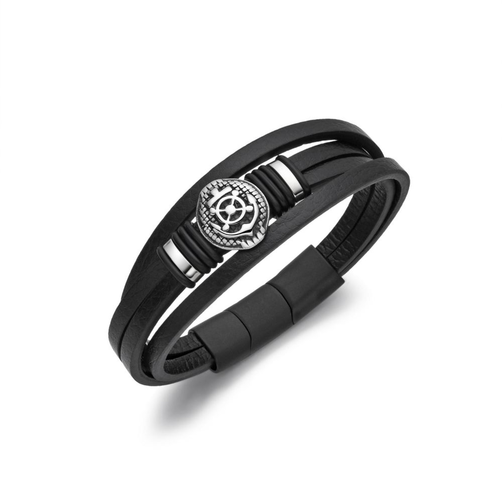 DIVERSE kožený náramek z oceli