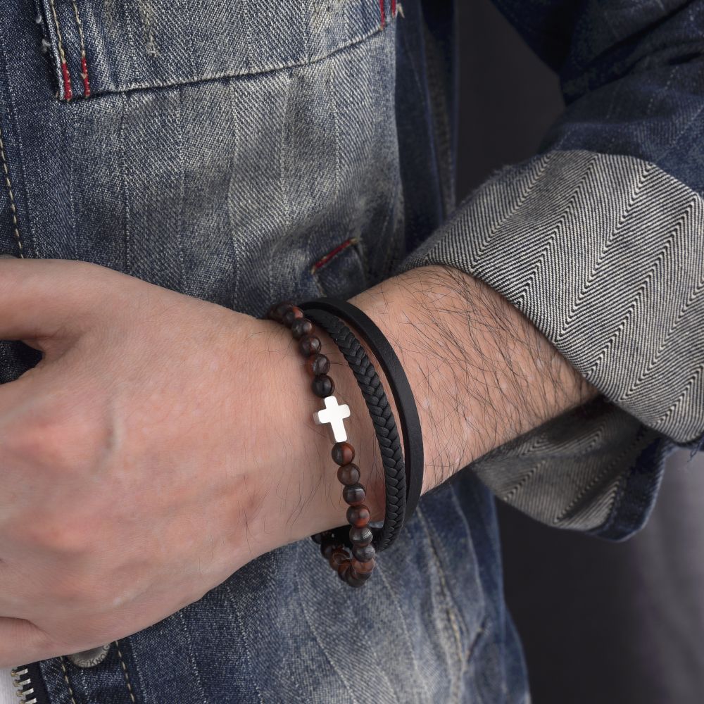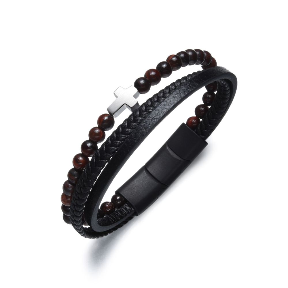 Pánský kožený náramek DIVERSE s ocelovým křížkem spojuje mužný styl, symboliku a moderní design. Výrazný doplněk pro každodenní nošení.