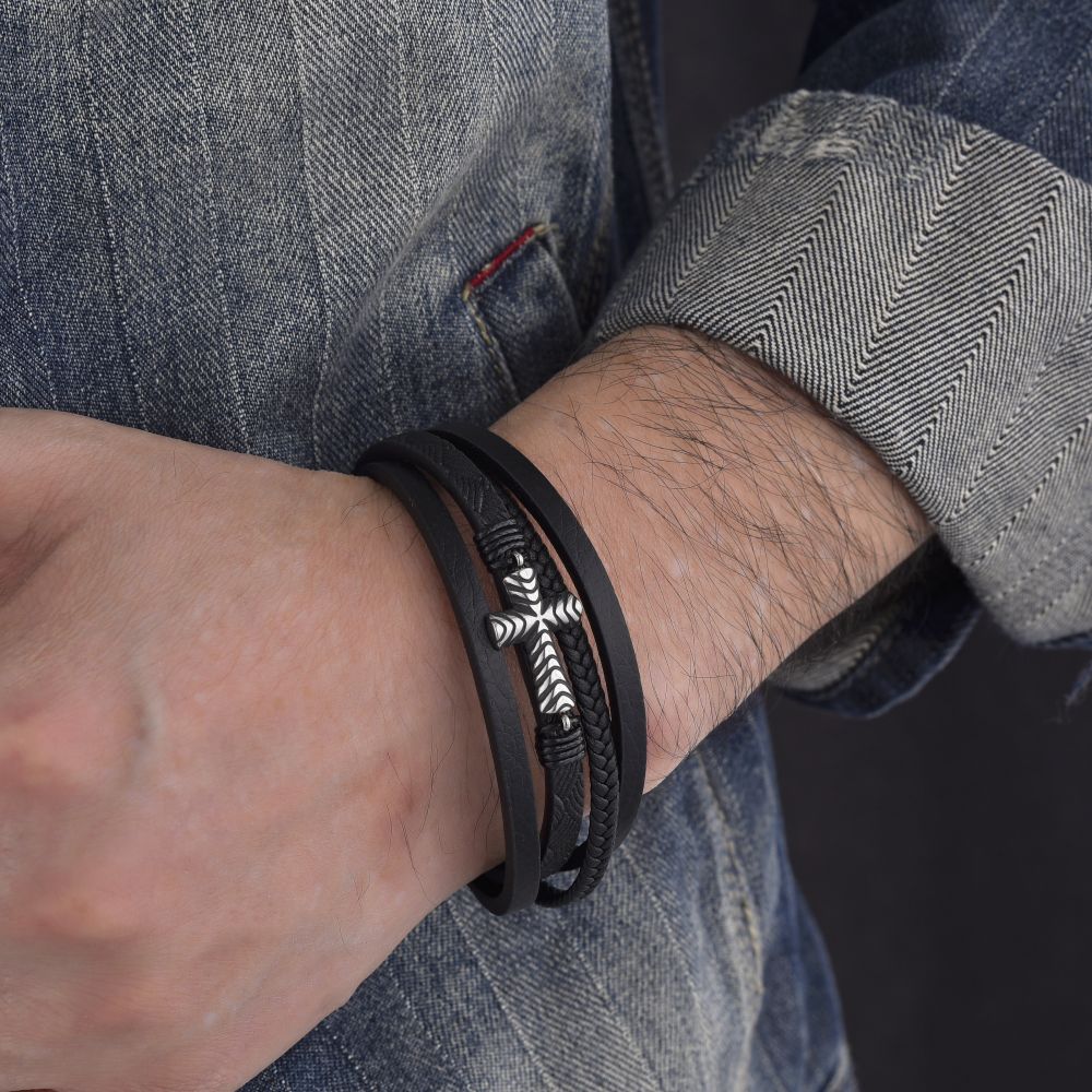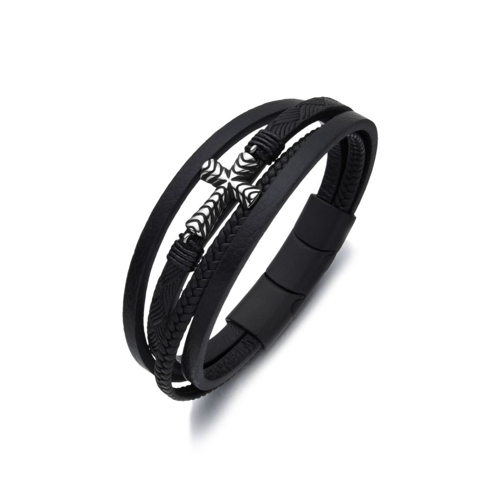 DIVERSE kožený náramek z oceli KŘÍŽEK