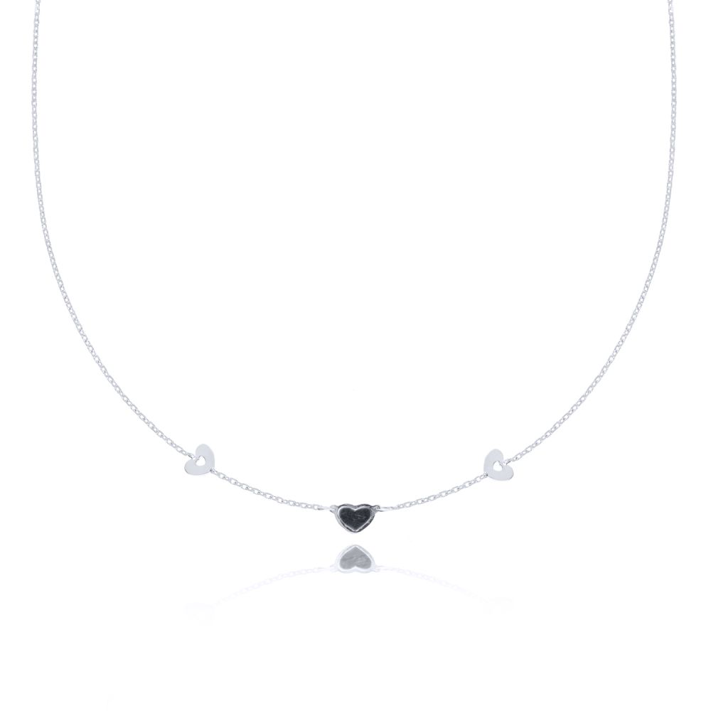 MOISS náhrdelník z bílého zlata SRDCE ONYX