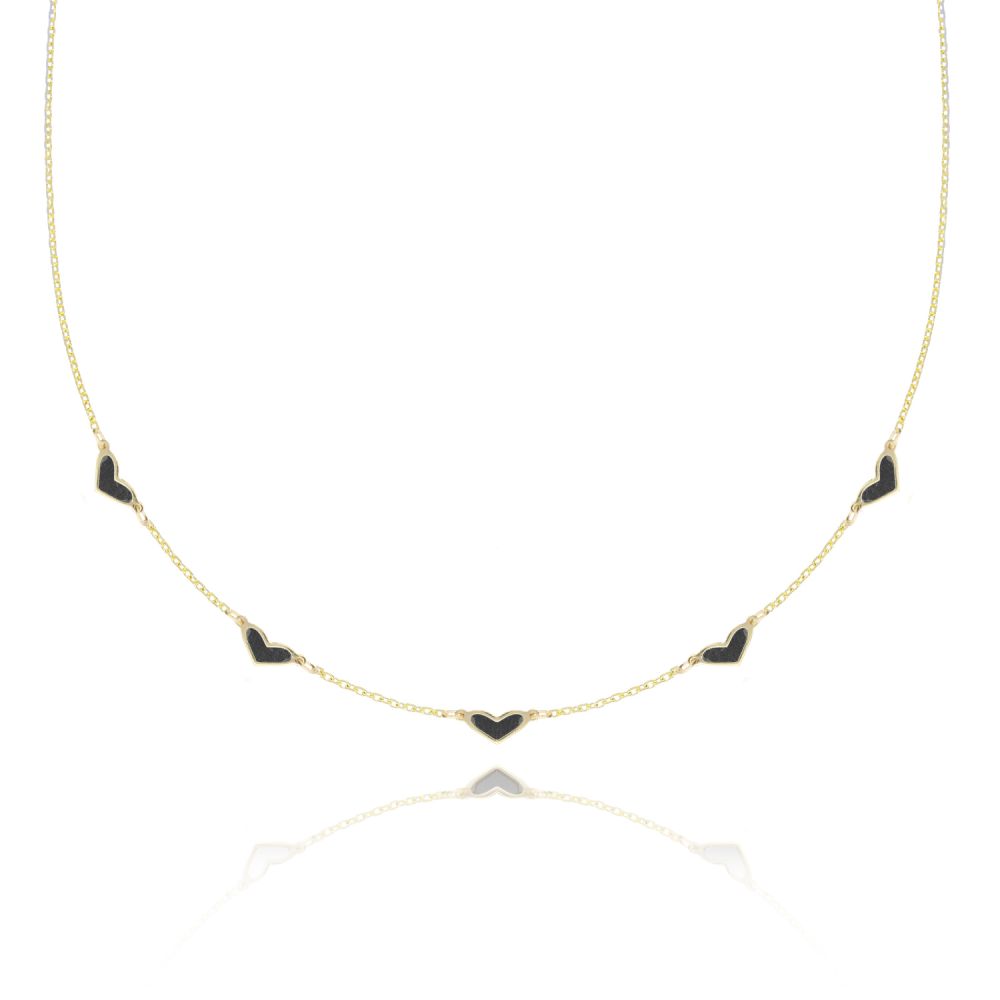 MOISS náhrdelník ze žlutého zlata SRDCE ONYX