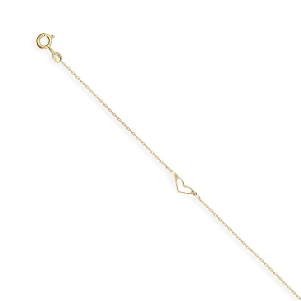 Elegantní náramek MOISS ze žlutého zlata se symbolem srdce je jemným vyjádřením lásky, ženskosti a nadčasového stylu.