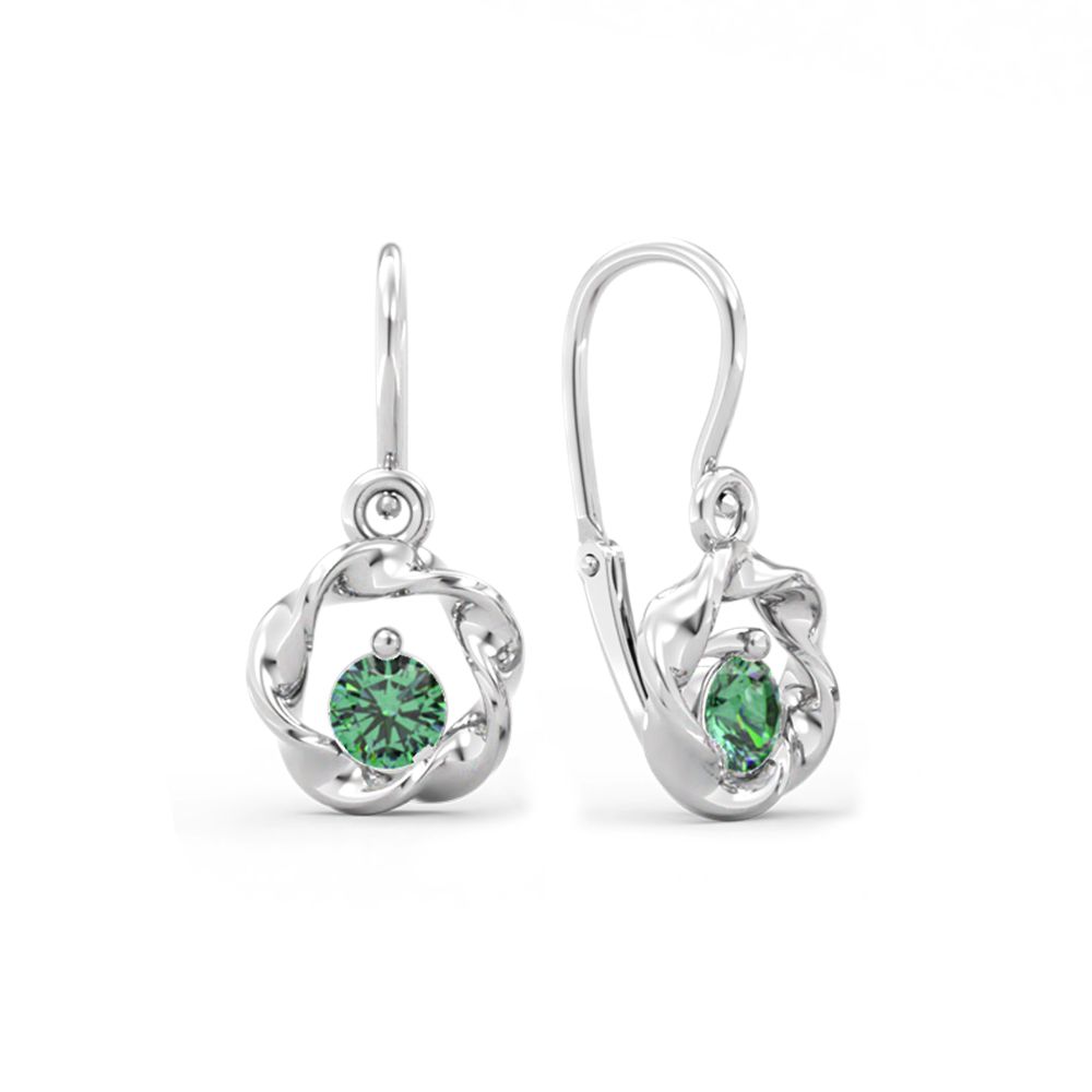 Jemné visací dětské náušnice MOISS z bílého zlata se zeleným kamínkem rozzáří dětský úsměv a dodají každému outfitu něžný třpyt.