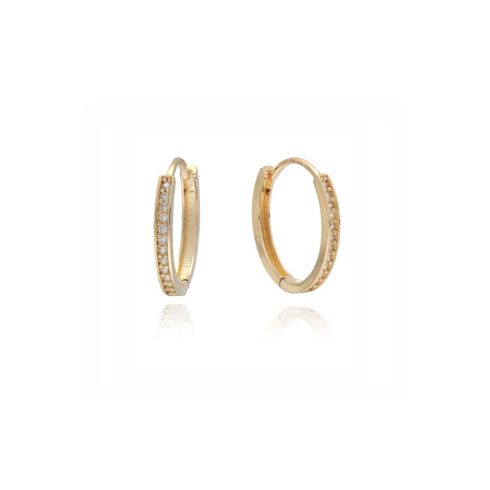 MOISS náušnice ze žlutého zlata kruhy se zirkony jsou elegantním šperkem s nadčasovým tvarem a jemným třpytem.