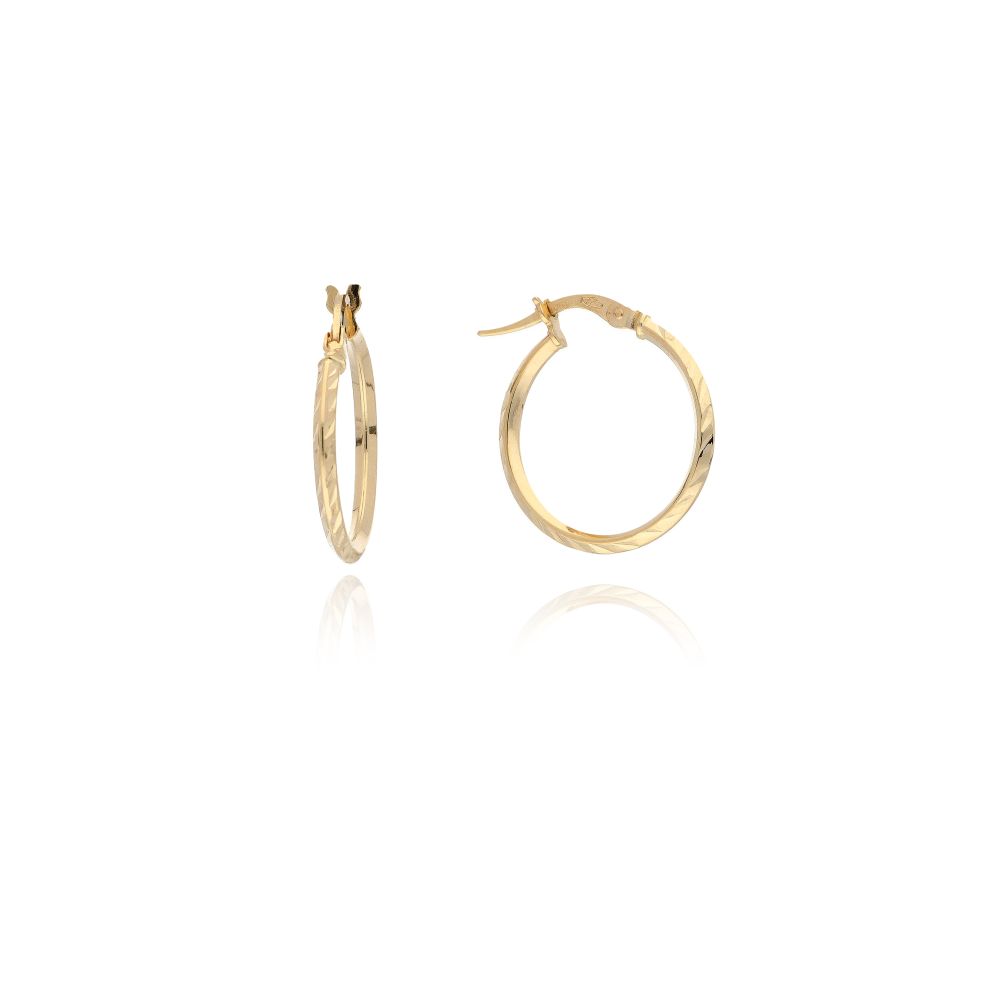 MOISS náušnice ze žlutého zlata kruhy s broušením zaujmou jemným leskem a elegantní hrou světla.