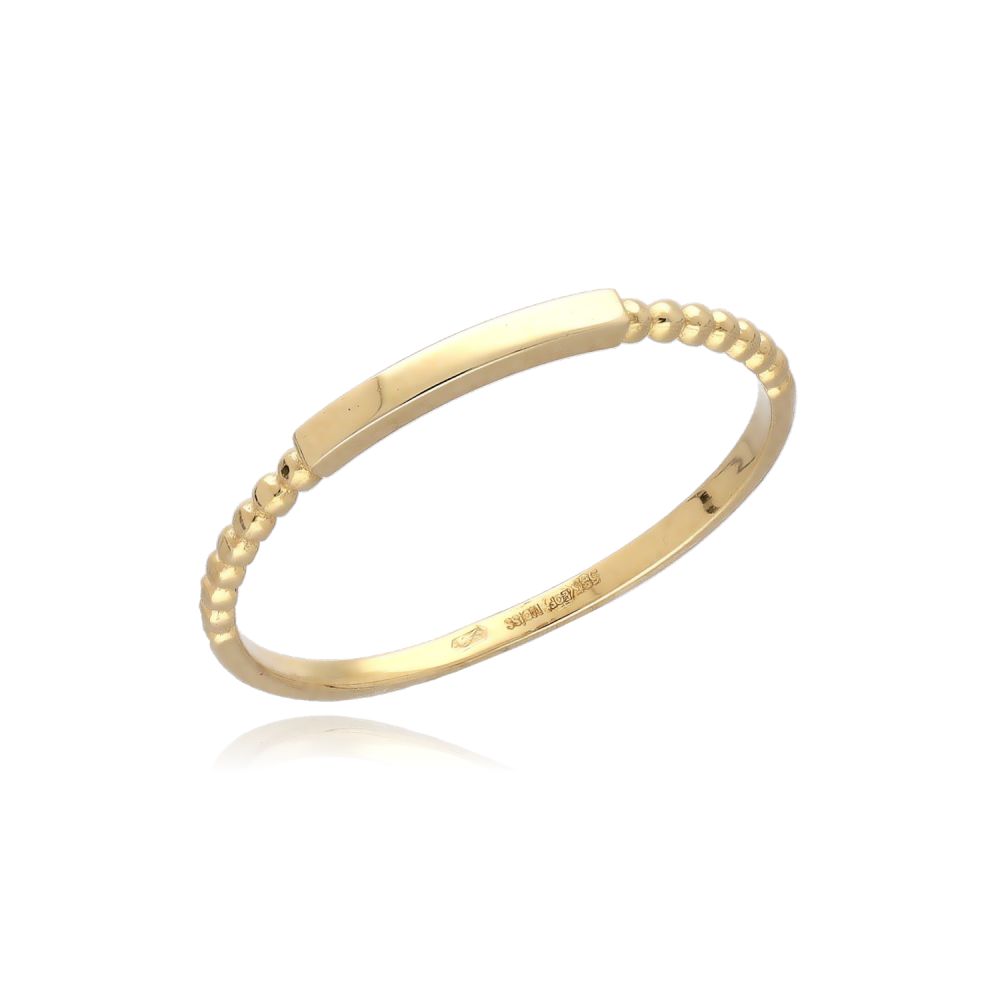 Minimalistický prsten MOISS ze žlutého zlata s hladkou linií a kuličkovými detaily je elegantním šperkem pro každý den.