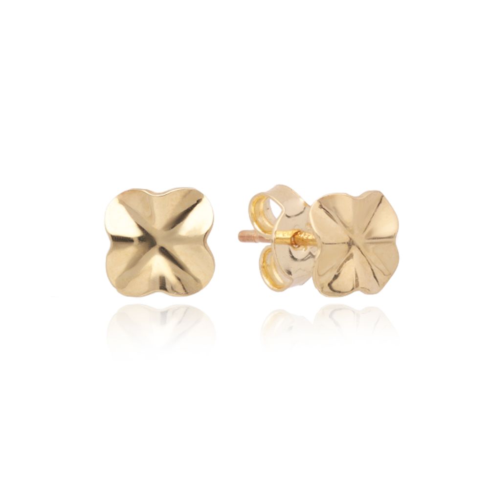 MOISS náušnice ze žlutého zlata ČTYŘLÍSTEK