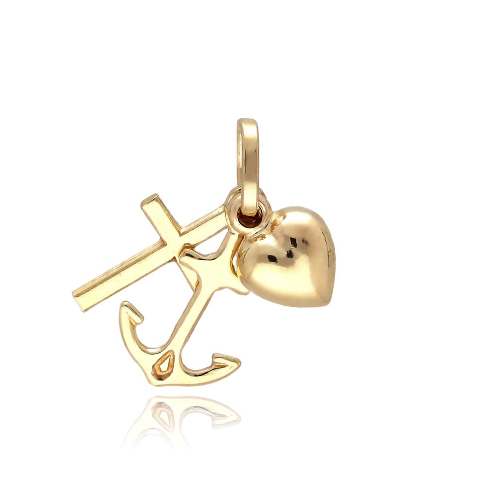 MOISS přívěsek ze žlutého zlata KŘÍŽ, SRDCE, KOTVA
