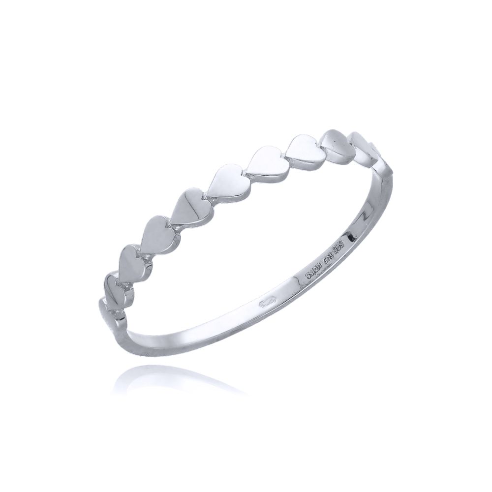 Romantický prsten MOISS z bílého zlata s řadou jemných srdíček je něžným symbolem lásky a nadčasové elegance.