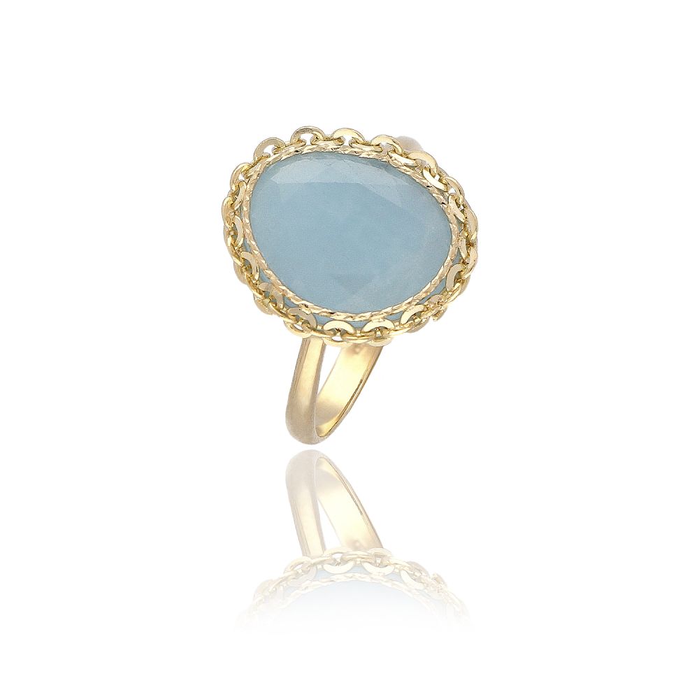 MOISS prsten ze žlutého zlata AKVAMARÍN