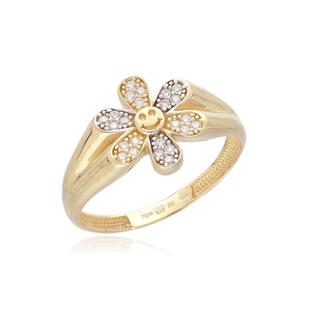 MOISS prsten ze žlutého zlata KVĚTINA BICOLOR