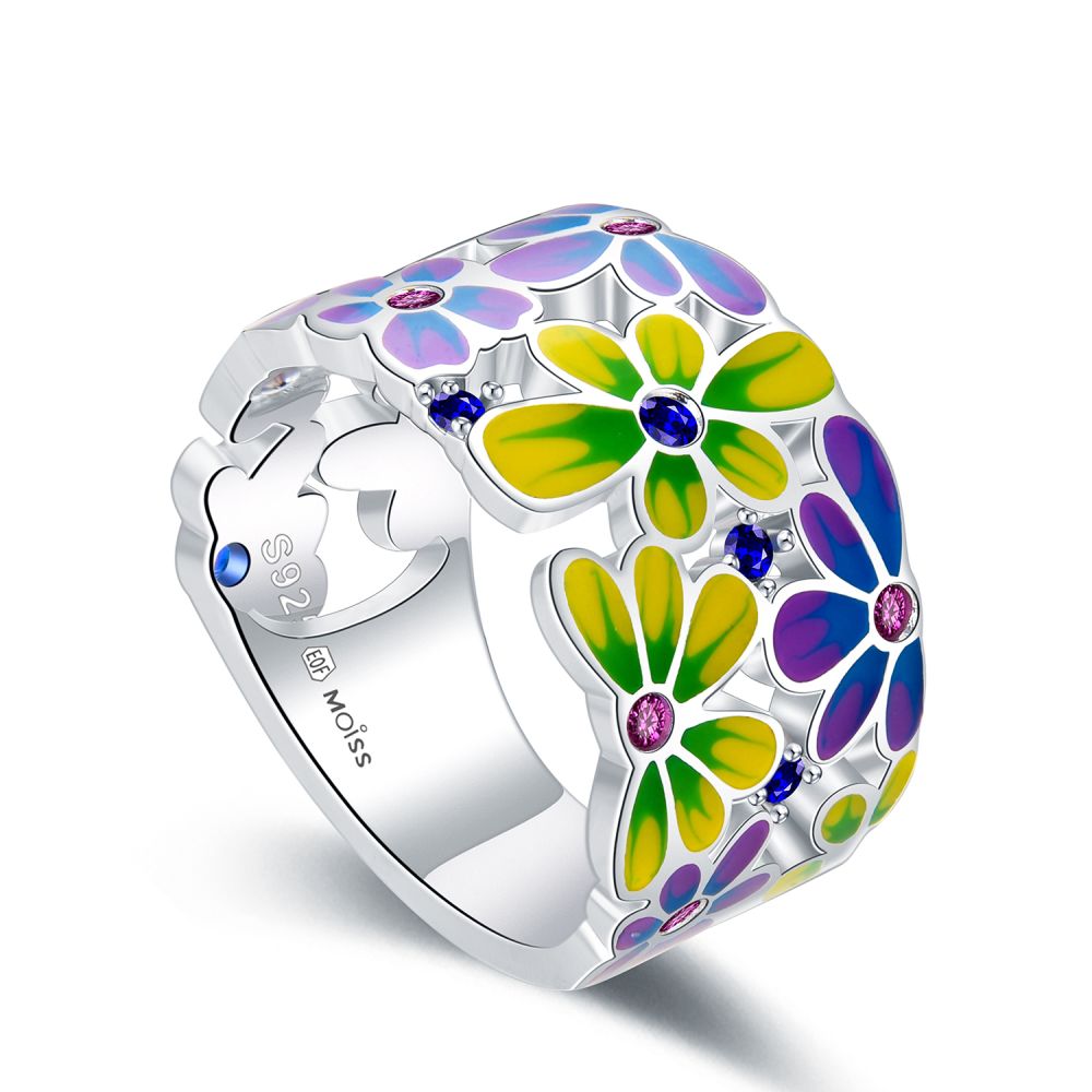 MOISS stříbrný prsten SMALT KVĚTINA
