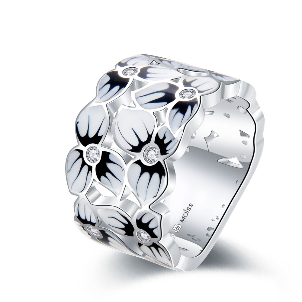 MOISS stříbrný prsten SMALT KVĚTINA