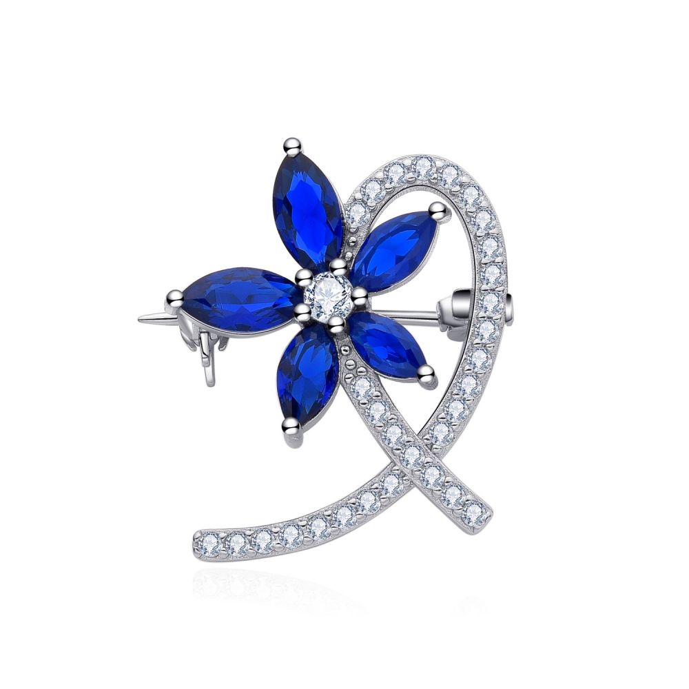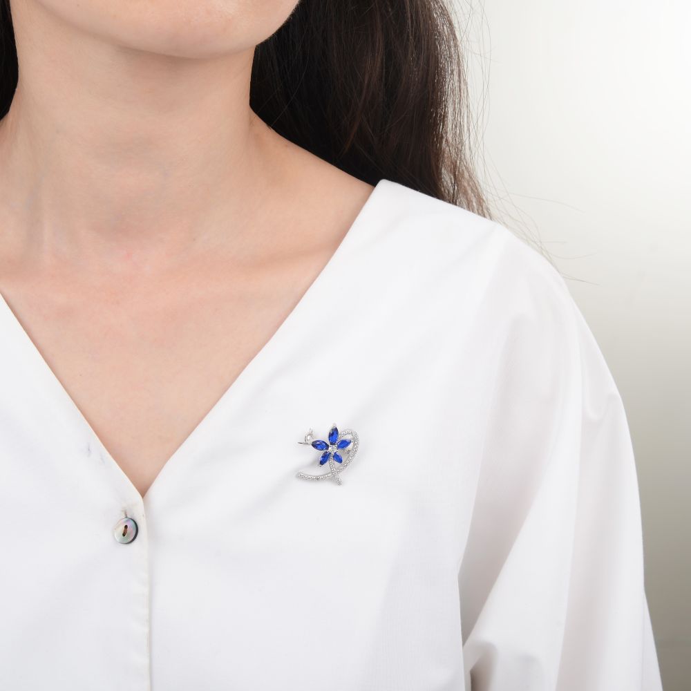 Výrazná MOISS stříbrná brož KVĚTINA z modrých kamenů – elegantní šperk inspirovaný přírodou, který rozzáří každý outfit noblesním třpytem a barvou.