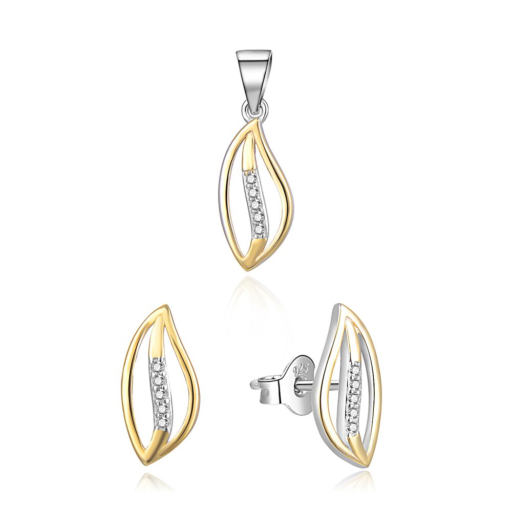 Elegantní stříbrná sada MOISS s náušnicemi a přívěskem v bicolor provedení se žlutým pozlacením zaujme nadčasovou elegancí a jemným luxusem.