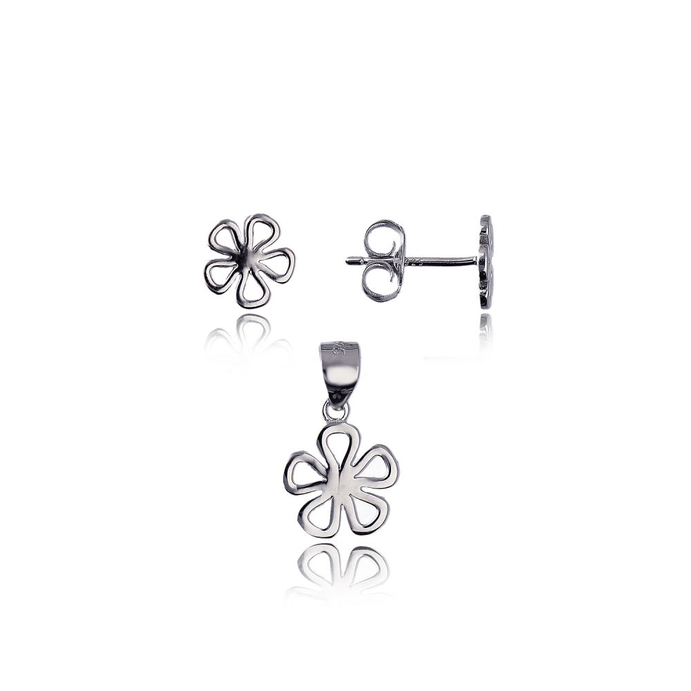 Stříbrná sada MOISS KVĚTINA s náušnicemi a přívěskem v jemném otevřeném designu je symbolem lehkosti a přirozené elegance.