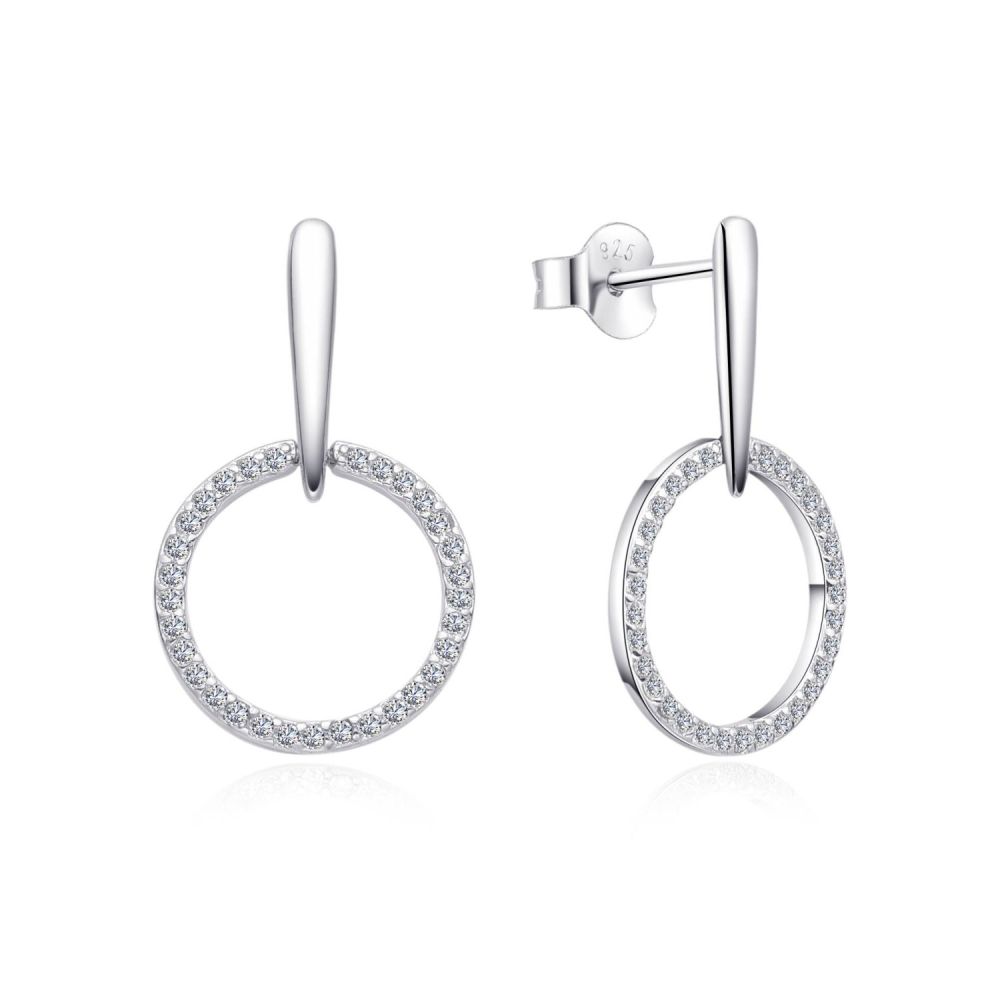 MOISS stříbrné náušnice jsou elegantní visací náušnice s jemným kruhem zdobeným třpytivými kamínky. Stylový šperk, který dodá vašemu vzhledu lehkost a jemný lesk.