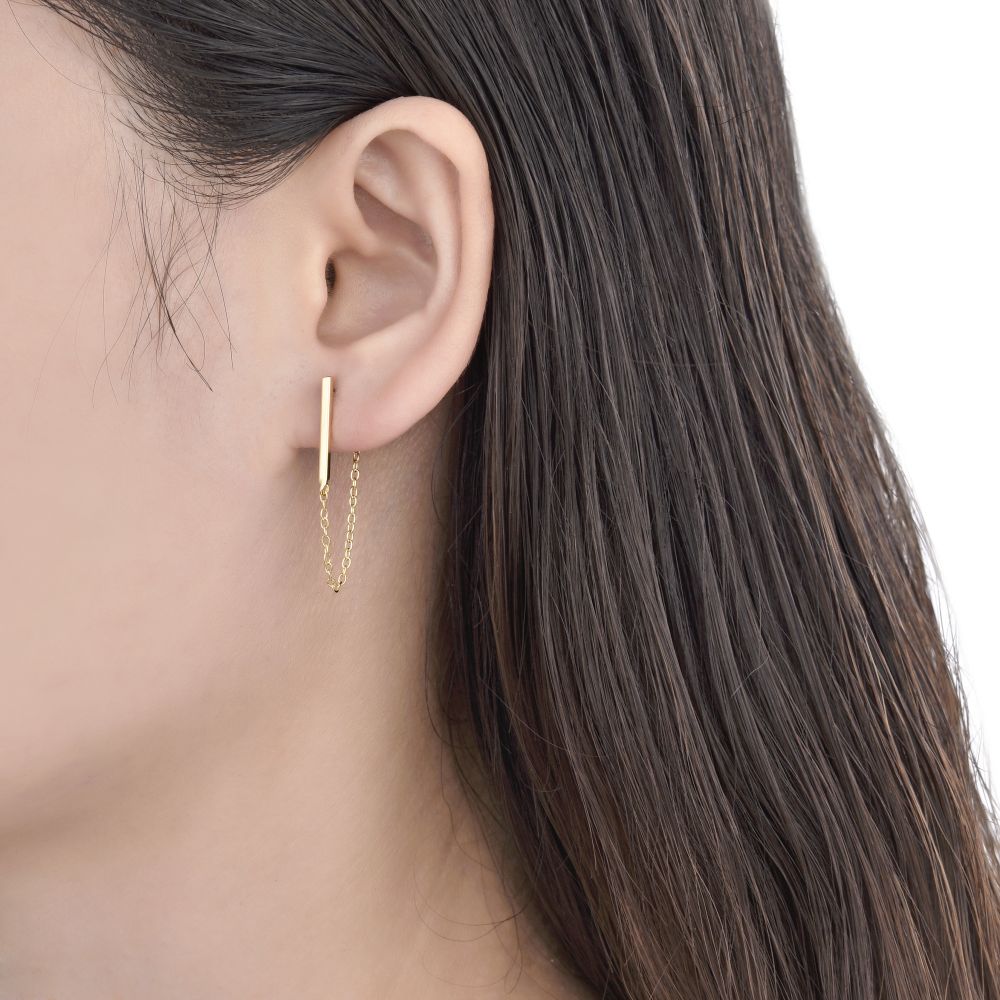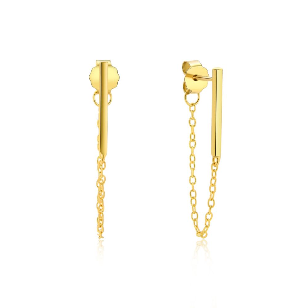 Zlacené stříbrné náušnice MOISS s tyčinkou a jemným řetízkem jsou moderním a elegantním doplňkem.