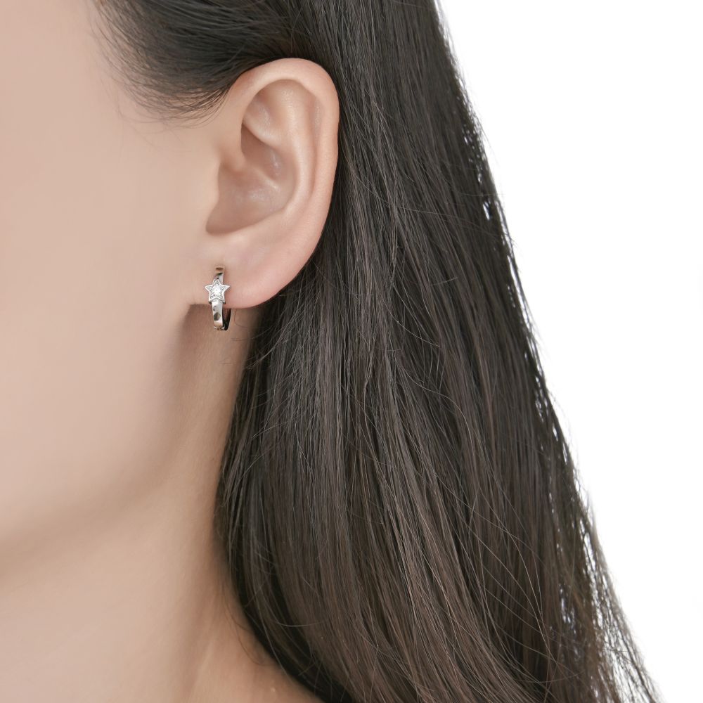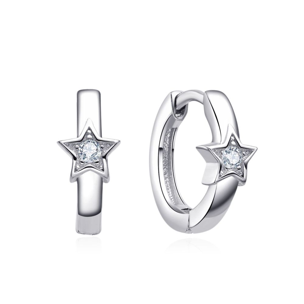 MOISS stříbrné náušnice HVĚZDA jsou elegantní kroužkové náušnice zdobené jemnou hvězdou s třpytivým kamínkem. Stylový šperk inspirovaný motivem noční oblohy.