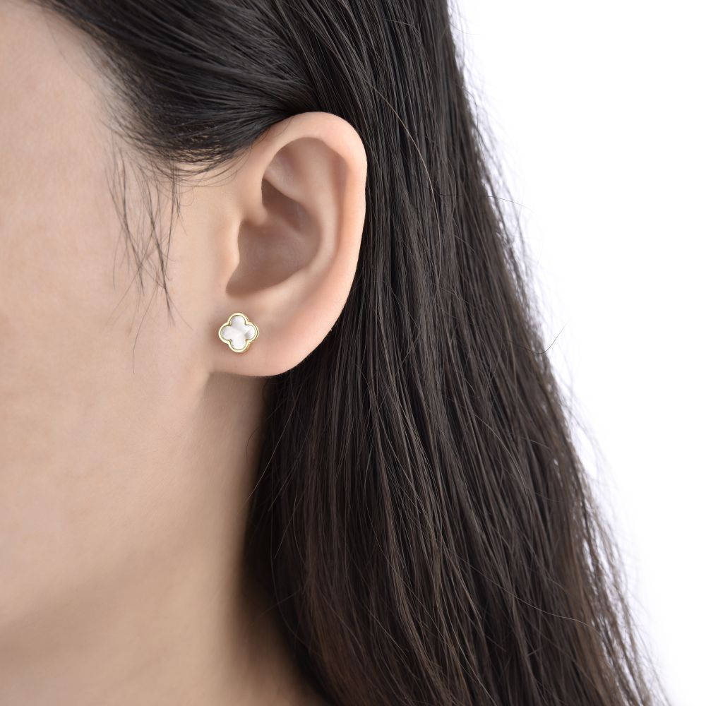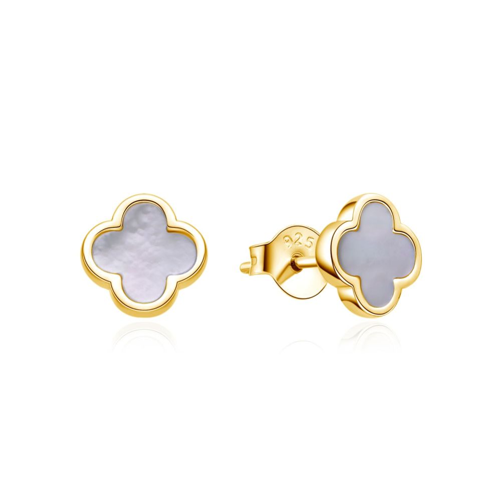 Pozlacené stříbrné náušnice MOISS s perletí zaujmou jemným leskem, ženskou elegancí a luxusním nádechem v každém detailu.