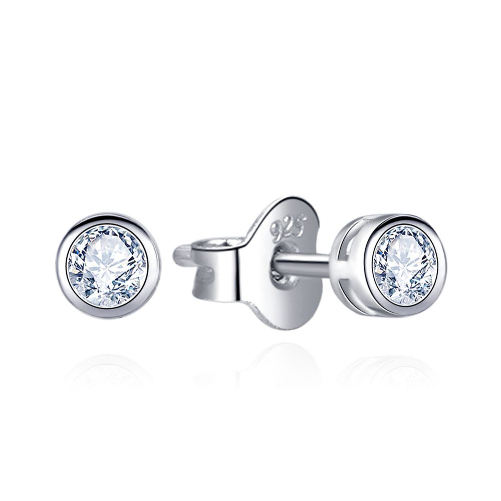 Stříbrné náušnice MOISS s čirým kamenem v hladkém rámu jsou nadčasovým a elegantním doplňkem.