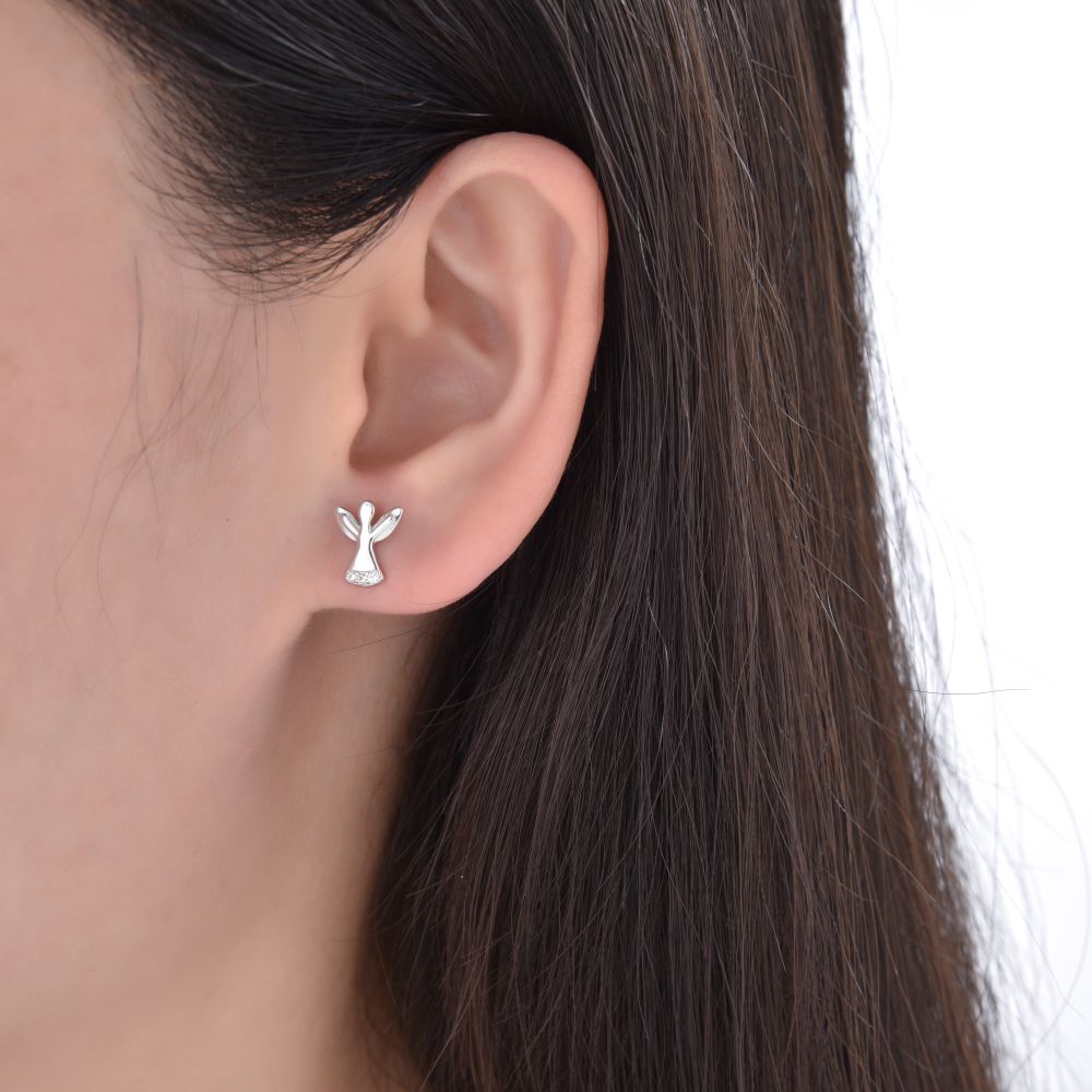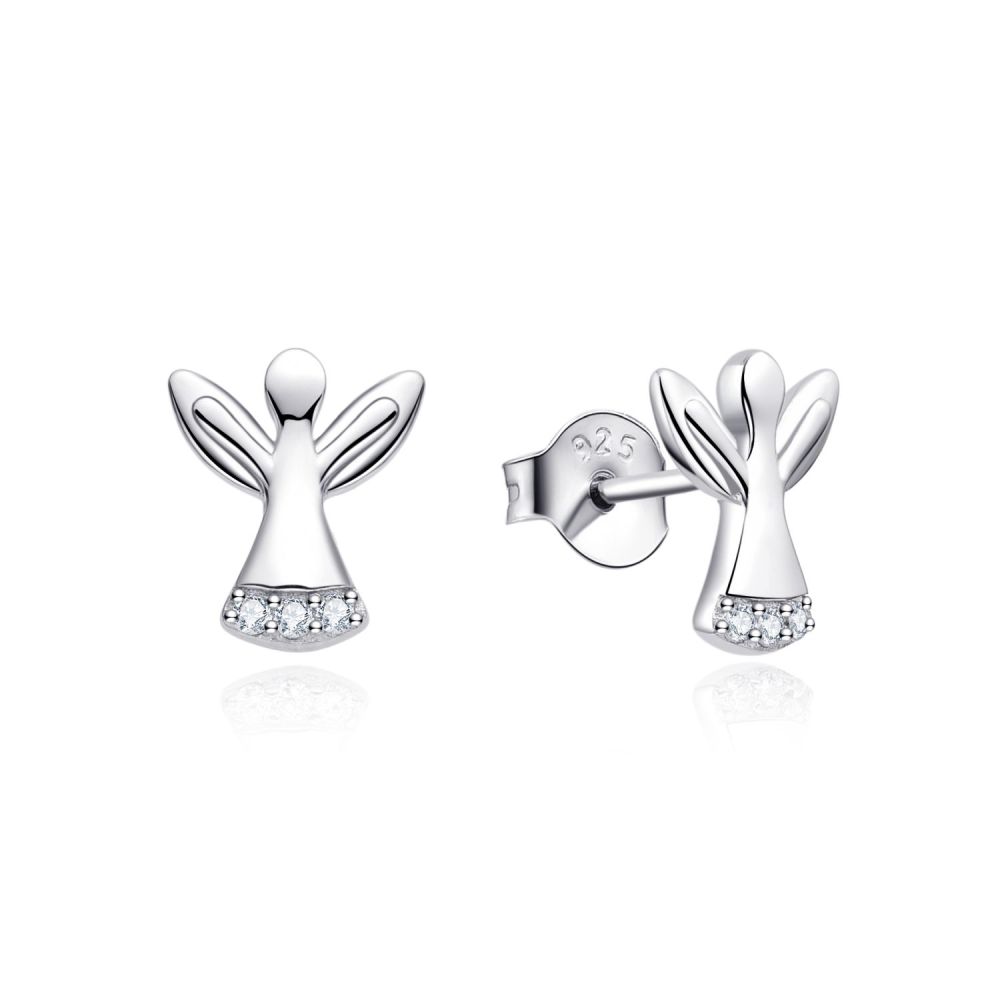 Jemné stříbrné náušnice MOISS s motivem anděla zdobeného třpytivými zirkony jsou symbolem ochrany, něhy a elegantního ženského stylu.