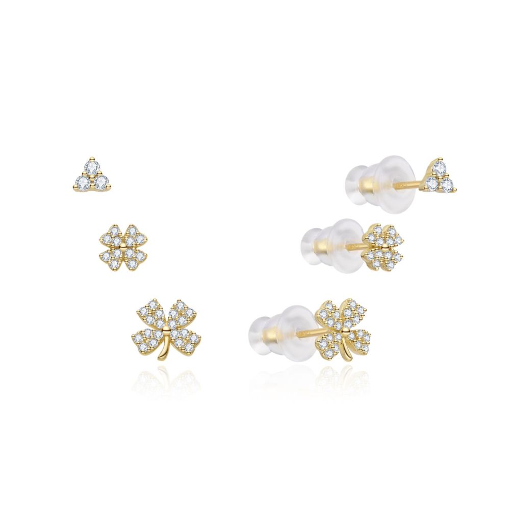 MOISS stříbrné náušnice ČTYŘLÍSTEK GOLD