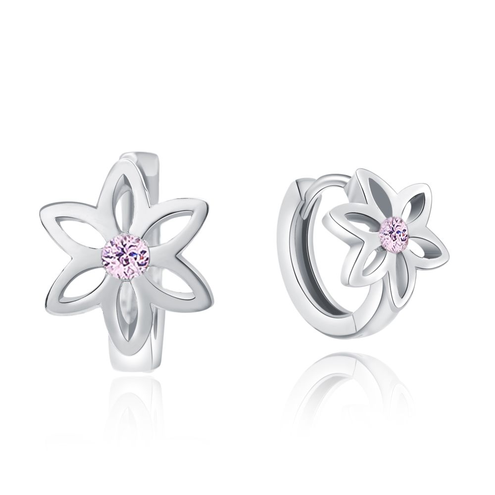 Stříbrné náušnice MOISS ve tvaru kroužků s motivem květiny spojují jemnou ženskost a nadčasovou eleganci. Stylový šperk pro každý den i výjimečné chvíle.