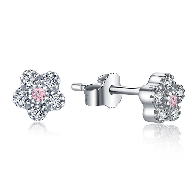 MOISS stříbrné náušnice KVĚTINA s třpytivými kamínky a jemným růžovým středem rozzáří váš styl něžnou elegancí.