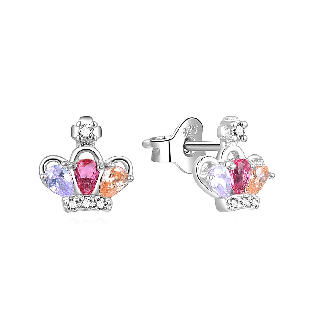Stříbrné náušnice MOISS KORUNKA s barevnými kameny jsou hravým a třpytivým šperkem pro malé i velké princezny.