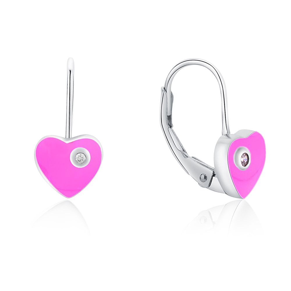 Hravé MOISS stříbrné náušnice SRDCE v růžovém provedení, které rozzáří každý outfit jemným barevným akcentem.