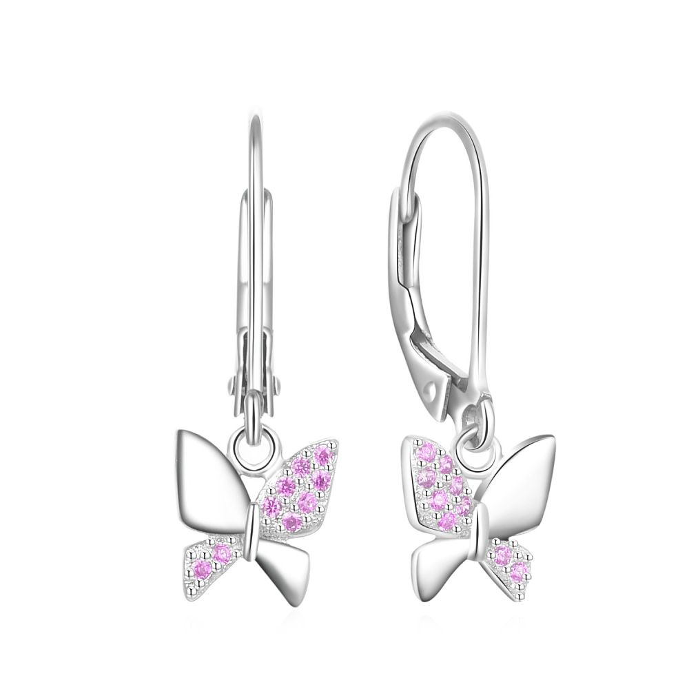 MOISS stříbrné náušnice MOTÝL jsou jemné náušnice s motivem motýla zdobené růžovými kamínky. Elegantní šperk, který působí něžně a hravě zároveň.
