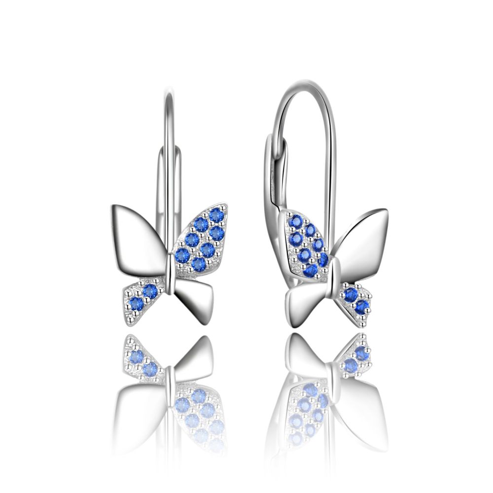 Jemné MOISS stříbrné náušnice MOTÝL – visací náušnice s něžným motýlím motivem a třpytivými zirkony, ideální pro každodenní nošení i jako stylový dárek.