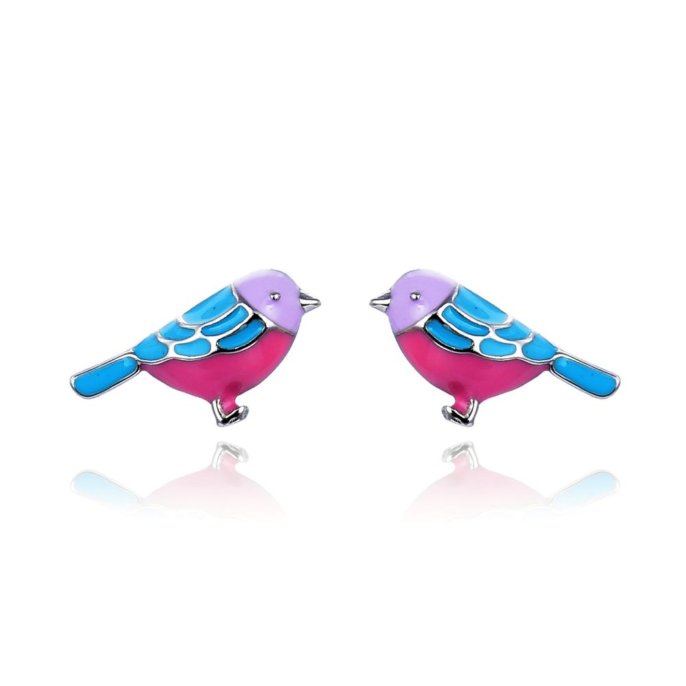 Stříbrné náušnice MOISS PTÁČEK na puzetu jsou veselým a barevným šperkem plným hravosti.