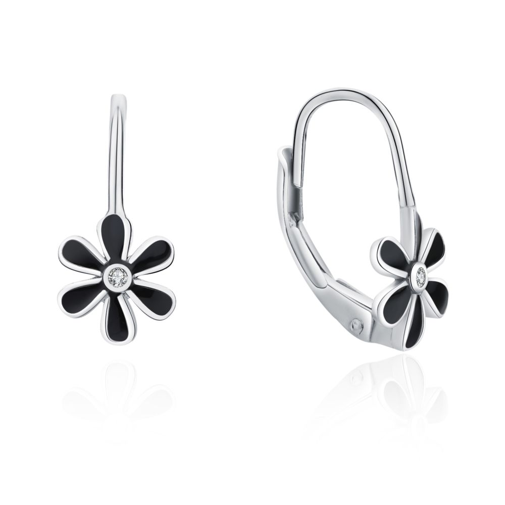 Jemné stříbrné náušnice MOISS s květinovým motivem zdobeným smaltem — hravý, barevný a romantický šperk pro dívky i ženy milující něžné detaily.