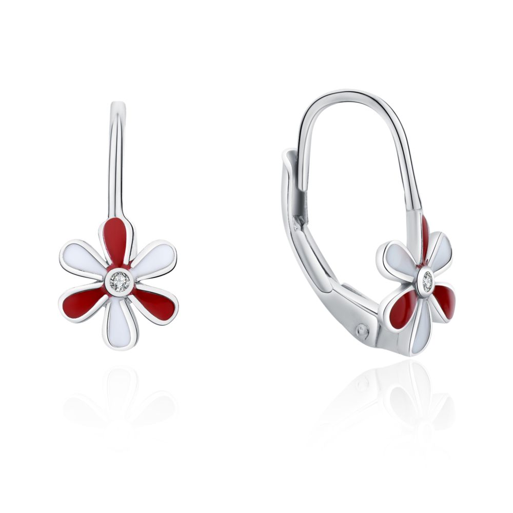 MOISS stříbrné náušnice KVĚTINA v červeno-bílém provedení jsou hravým a zároveň elegantním šperkem plným radosti.