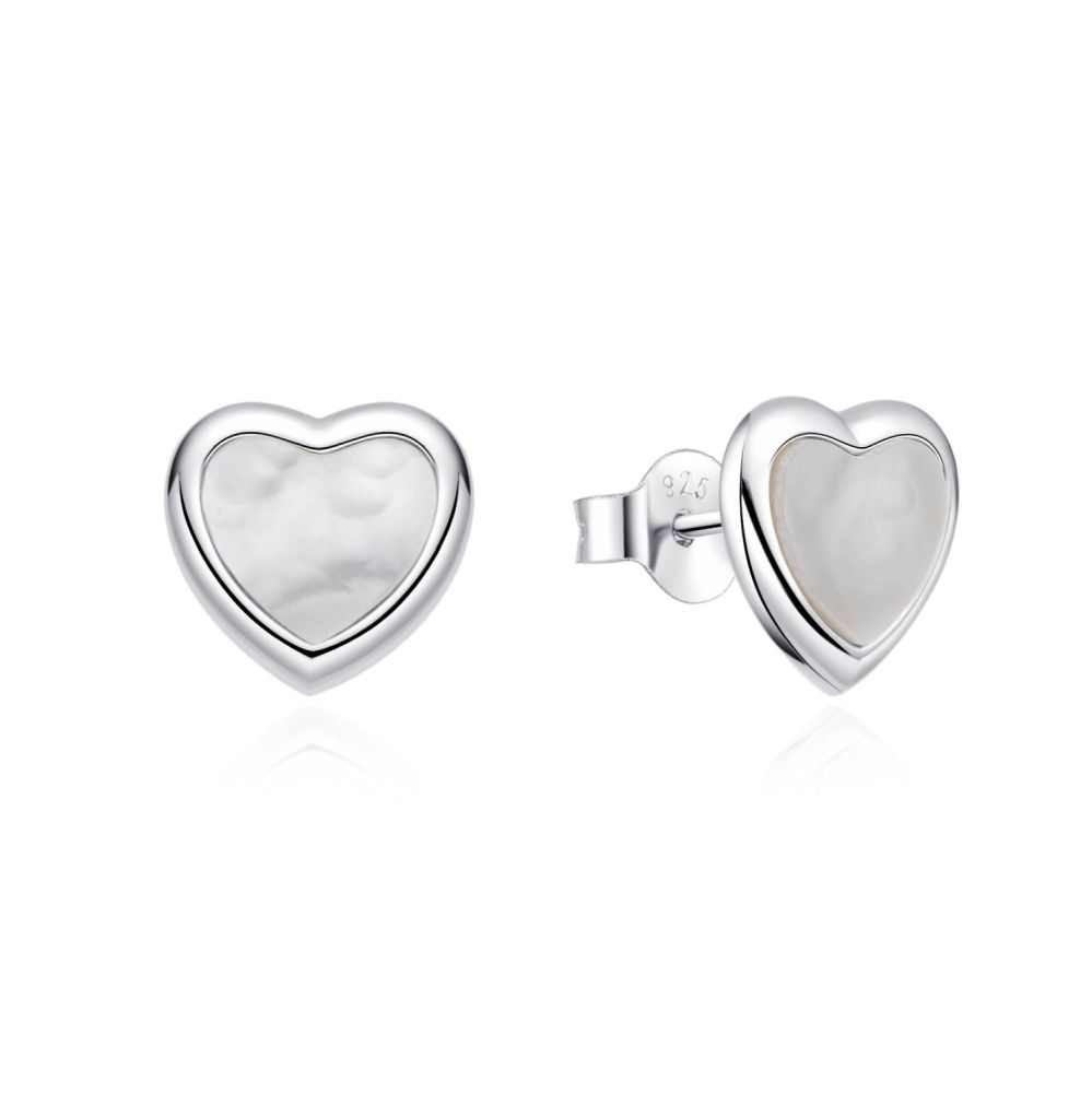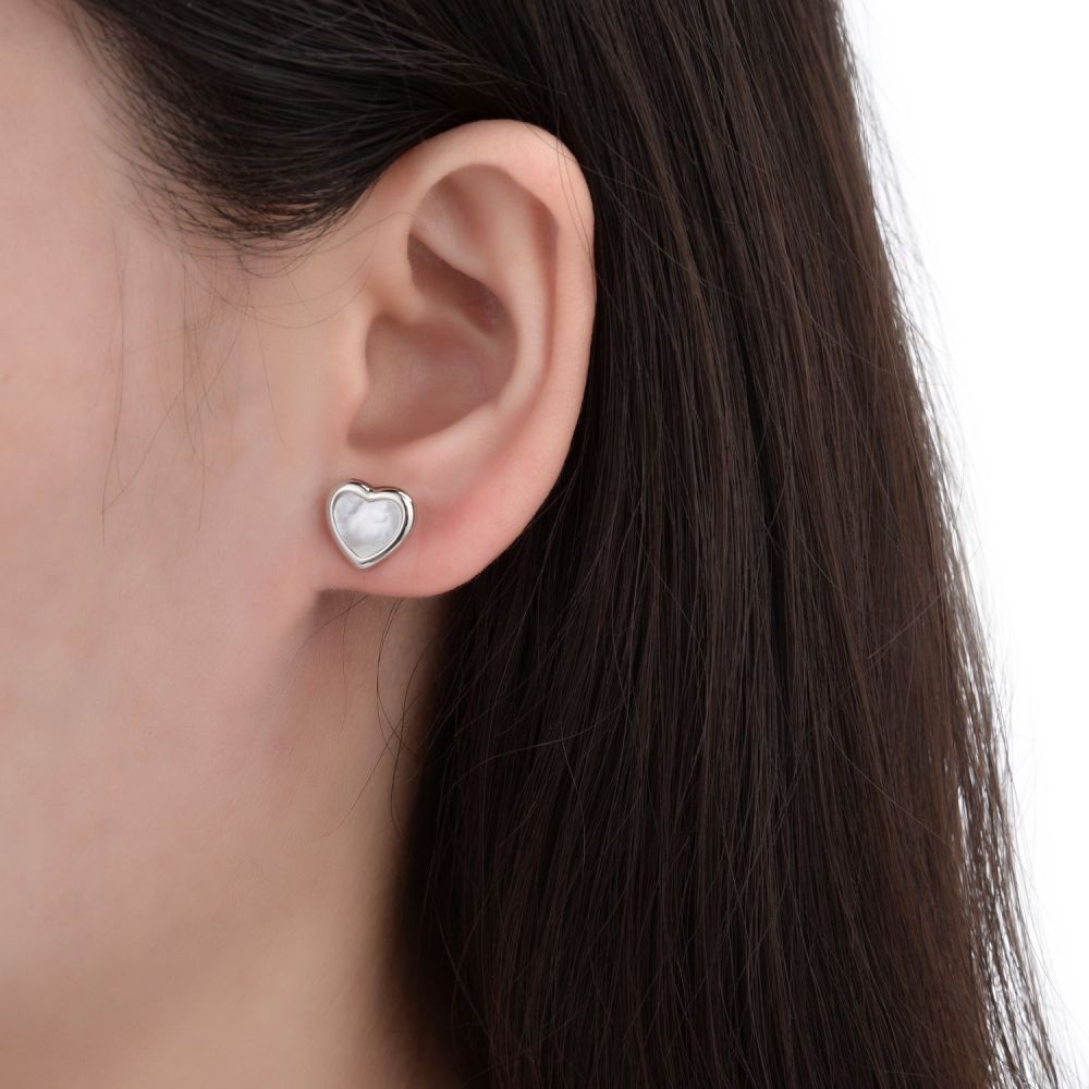 MOISS stříbrné náušnice SRDCE s perletí jsou jemné náušnice s romantickým motivem srdce doplněné elegantní perletí, která vytváří jemný duhový lesk.